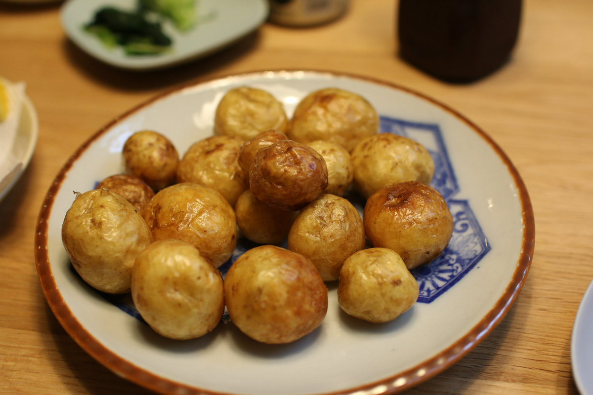 直売所で購入した小さめの男爵芋は素揚げにして塩のみで食べた。濃い甘味。